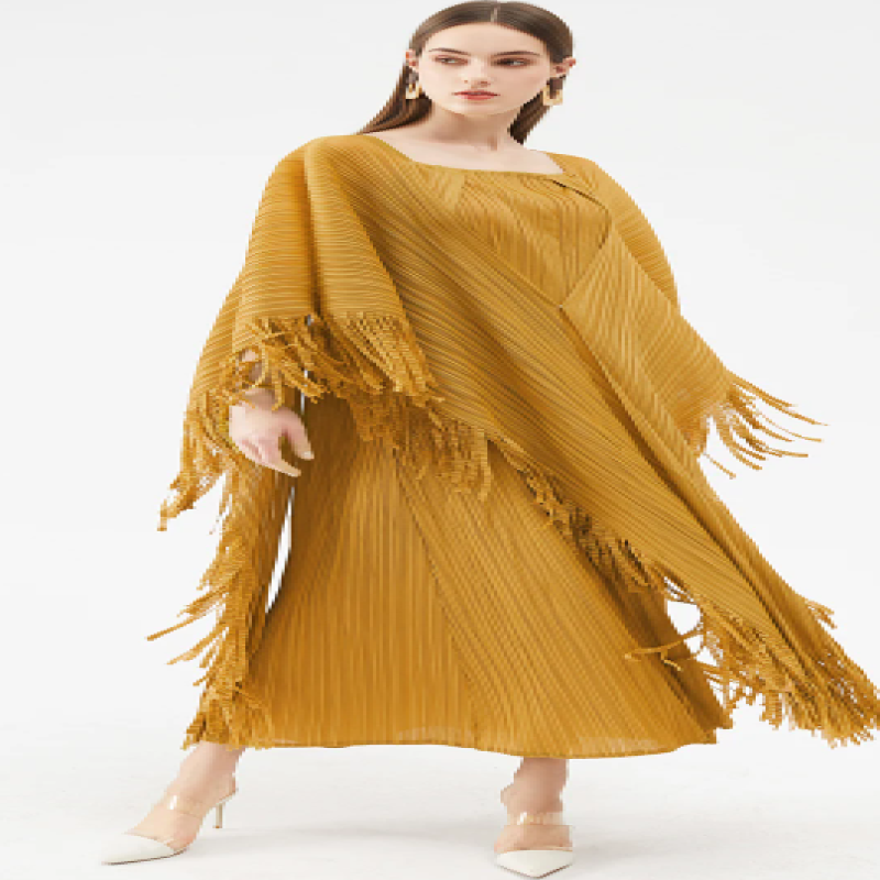 فستان مياكي (Free Size) ذو ثنيات بلون سادة
